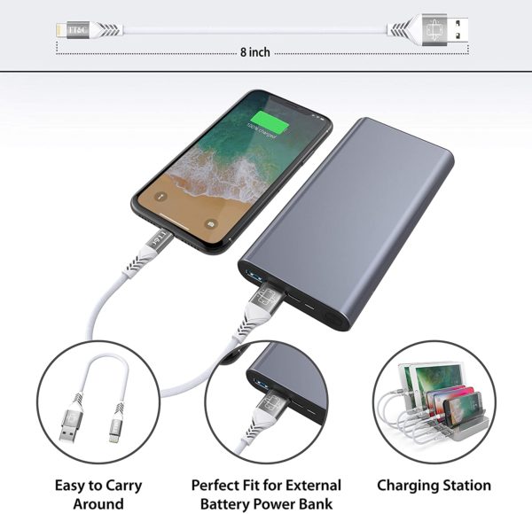 TT&C Short iPhone Lightning Cable-8 inch Cloth Braided Charger Sync and Charging Cord Compatible with iPhone 13/13 Pro /12/11/X/8//7/6/5/iPad (White)
